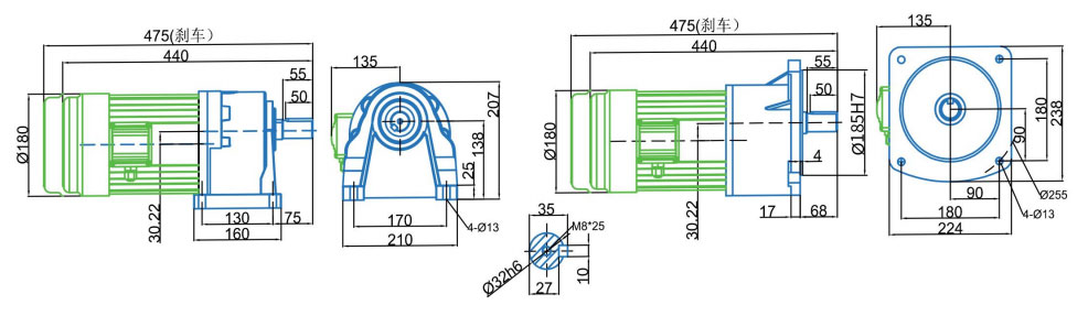 1.5kw 2hp | Fase tunggal | 220v | 50Hz | 4.1a | 1420RMP | 30μF 、 150μF | F | IP54 |