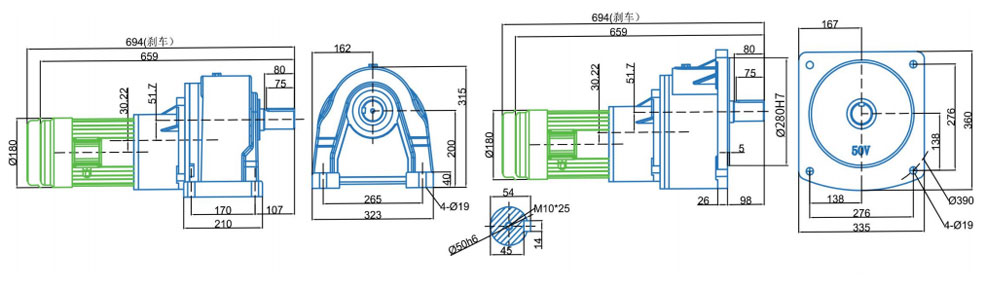 Output R.P.M. | 50Hz | 500 | 300 | 150 | 100 | 75 | 60 | 50 | 37 | 30 | 25 | 21.4 | 18.8 | 16.7 | 15 | 12.5 | 10.7 | 9.4 | 8.4 | 7.5 | 5 | 1.25 | 0.83 |
