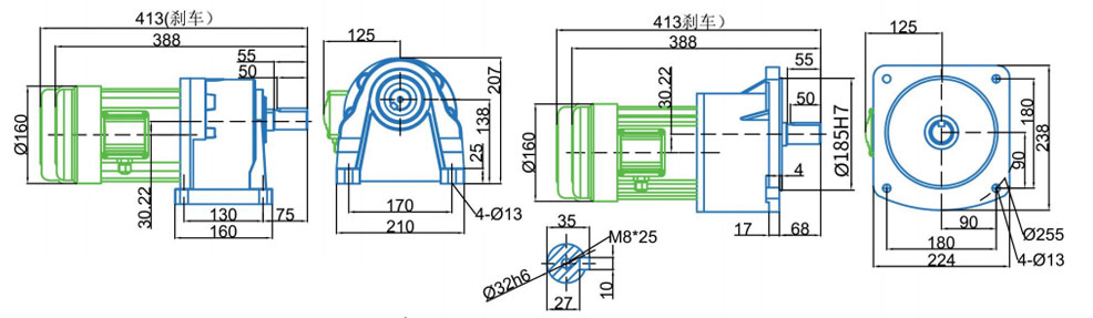 CH32/CV32-550W (1: 210 atau lebih tinggi diagram dimensi